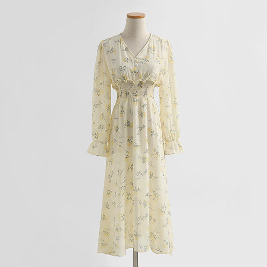 Langärmeliger Blumenrock aus Chiffon, dünn während der Teepause 2131