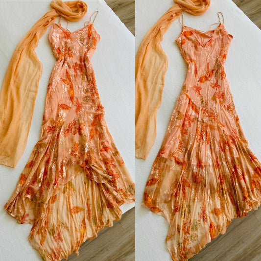 Spaghettiträger Orange A-Linien Kleid Ballkleid gh2930