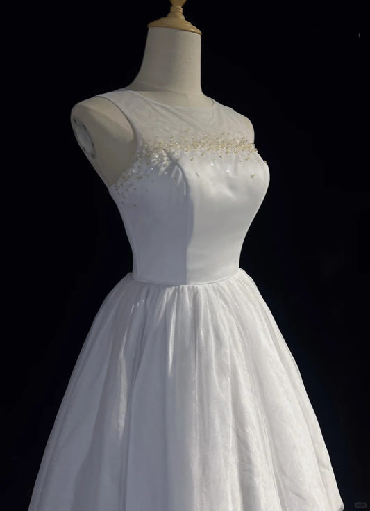Weiß, schlicht, schön, funkelnd, modisch, elegant, exquisiter Strass, kurz, rückenfrei, bodenlang, Tüll, Homecoming-Ballkleid, Abendkleid, Partykleid, Ballkleid, gh3865