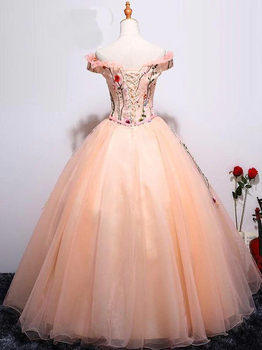 Wunderschönes hellrosa Flügelärmel-Stickerei langes formelles Kleid, schöne süße 16-Kleider gh595