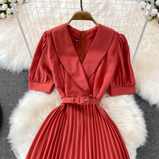 Süßes kurzes Kleid mit V-Ausschnitt A-Linie Modekleid 10715