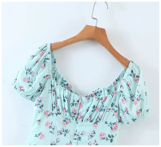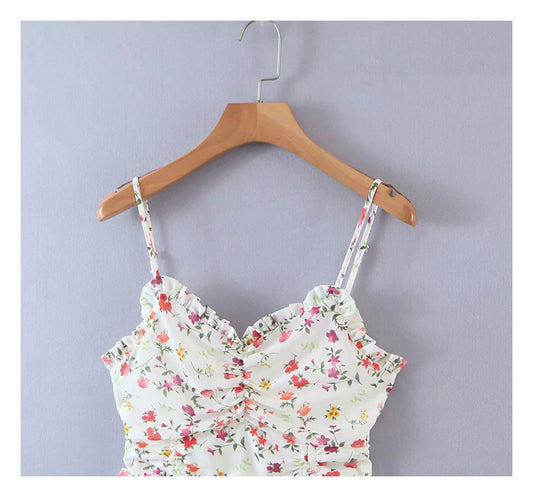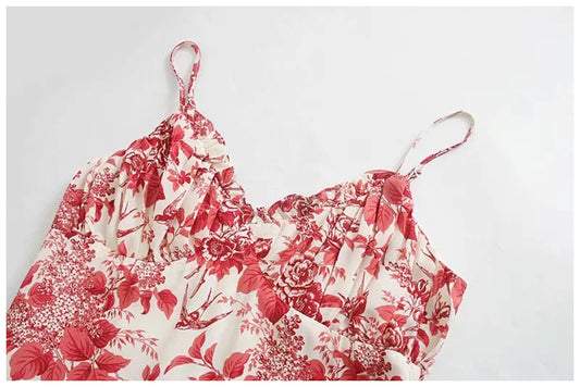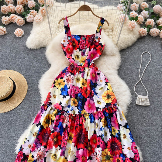 Französisches Retro-Strapskleid mit Blumenmuster, schlank und sexy 7149