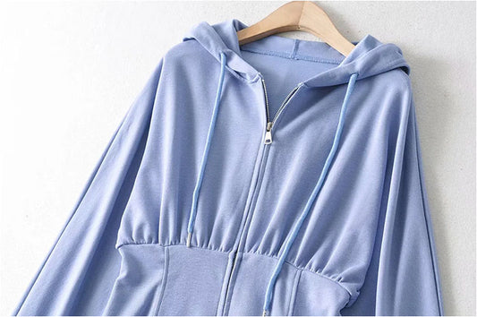 Fried Street Zipper Cardigan Dress Casual Hooded Sweater 7147