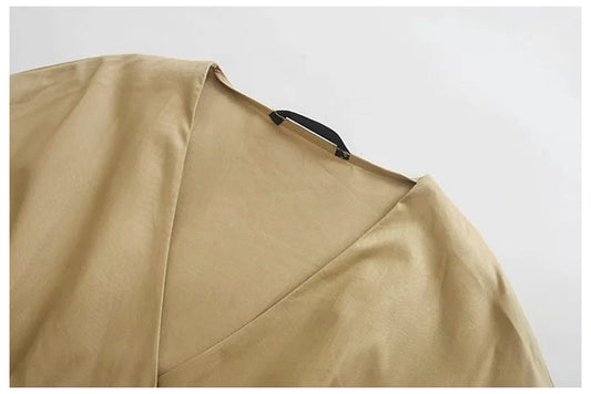 Langärmliges Damenkleid im europäischen und amerikanischen Stil mit Gürtel V-Ausschnitt Kleid 7103