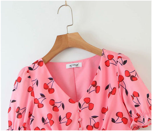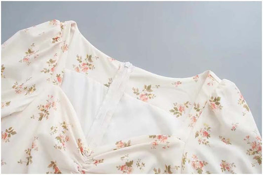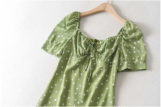 Kleines, frisches, schmales Kleid mit Blasenärmeln im Retro-Stil 7100