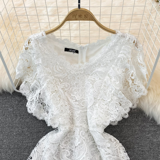 Schmales Spitzenkleid in A-Linie mit hoher Taille 11202