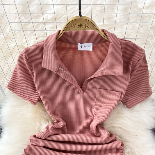 Schmaler und sexy Polokragen, sorgfältig maschinell gewickelter Hüftrock 11138