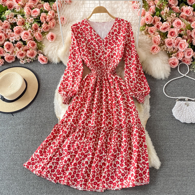 Süßes Blumenkleid mit langen Ärmeln Modekleid 443