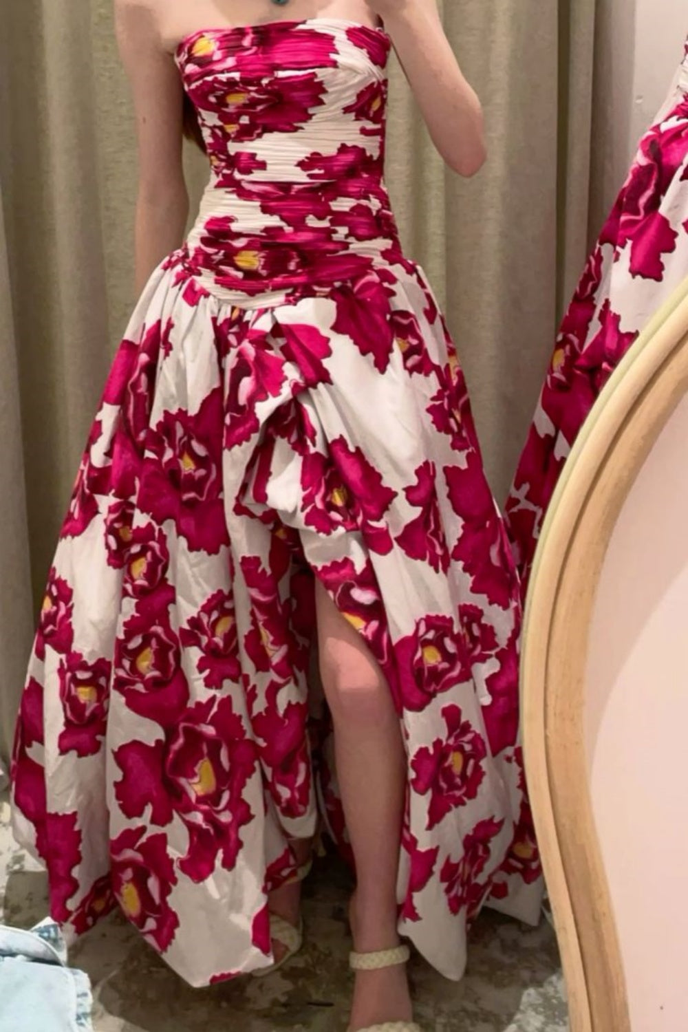 girlhomeshops-Blumenkleid, lang, Schlitz, Gartenpartykleid, gh5859