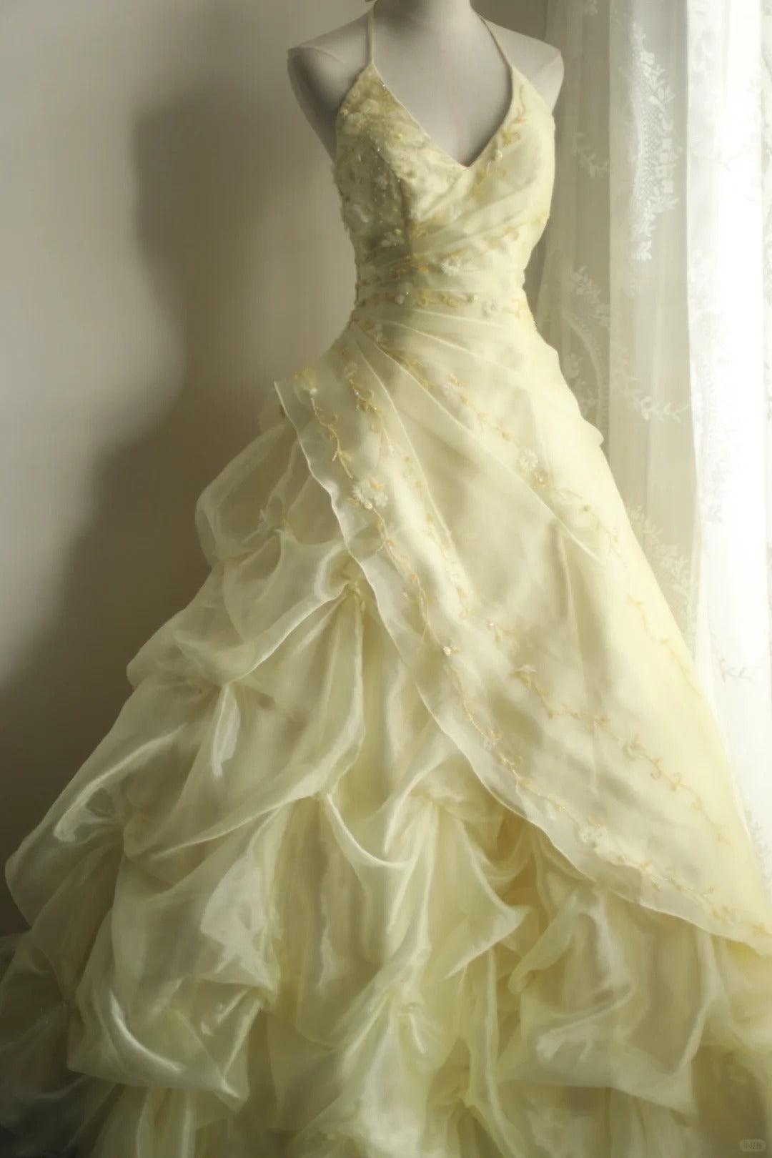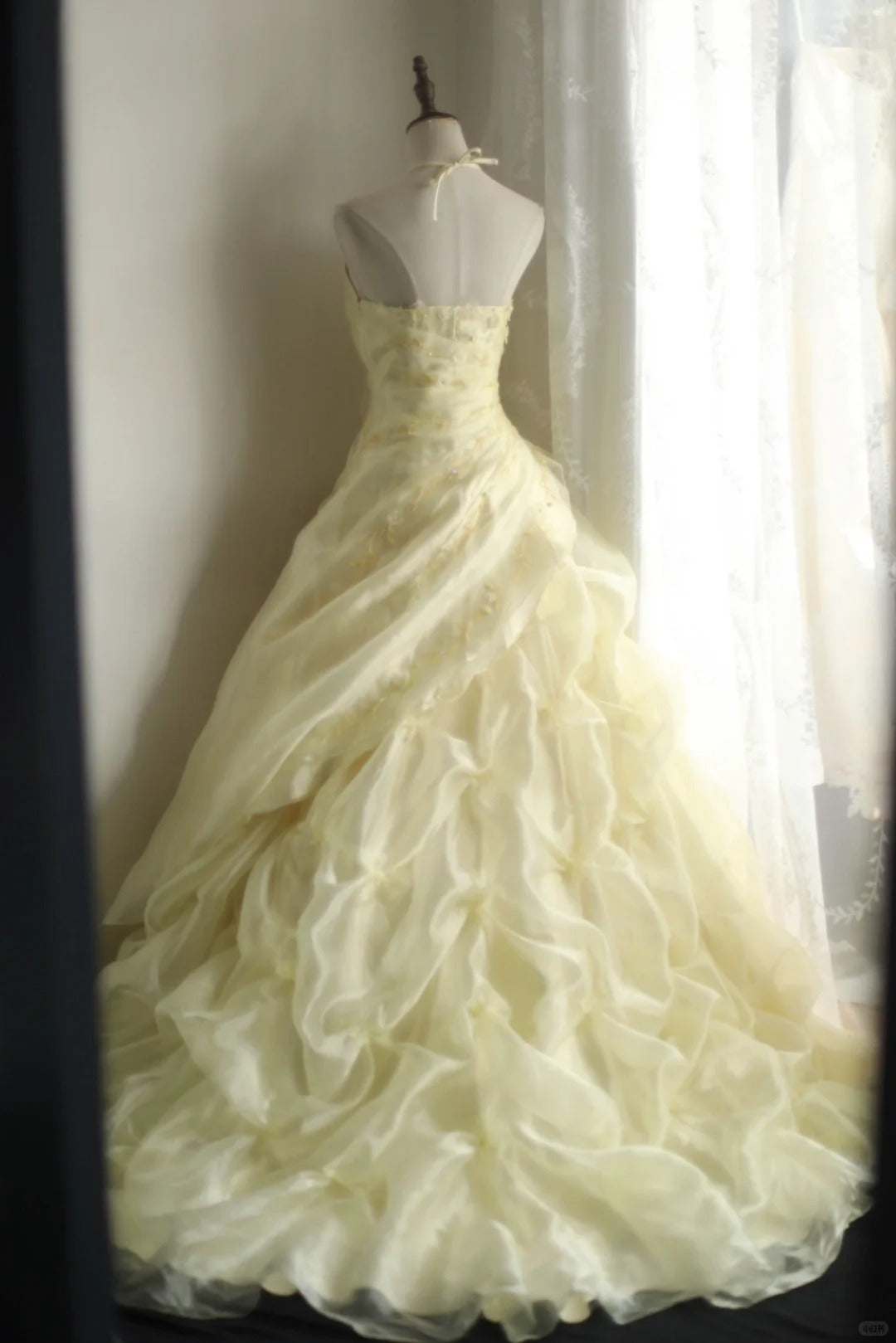 Girlhomeshops - Gelbes Retro Neckholder-Hochzeitskleid im Prinzessinnenstil, gh5425