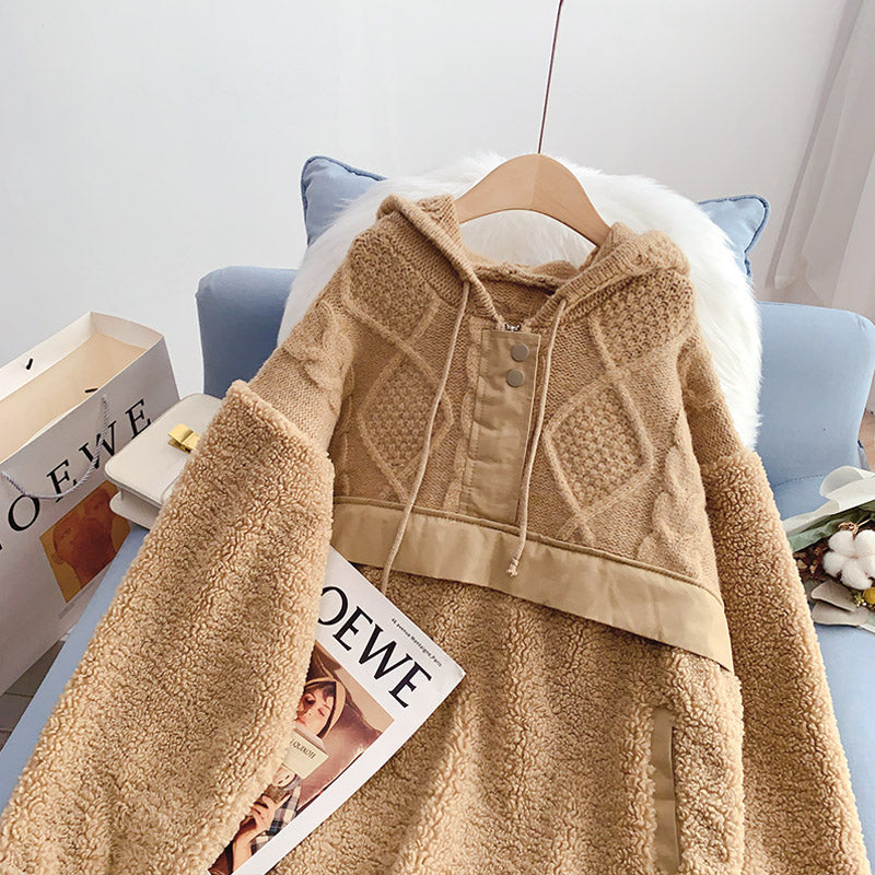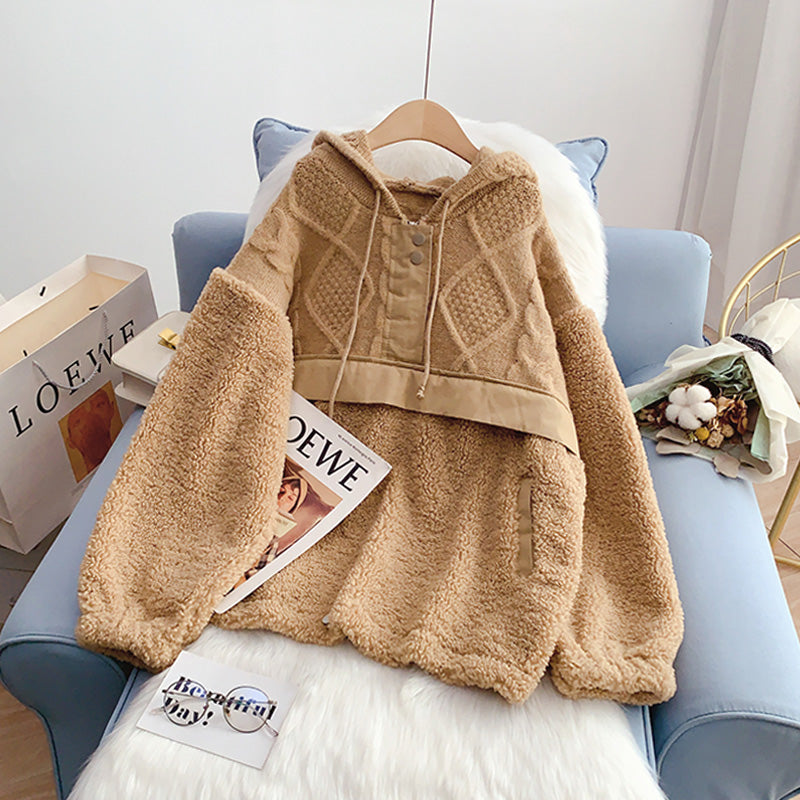 Lammwolle genähter Pullover Pullover Damen Hoodie Design 5203