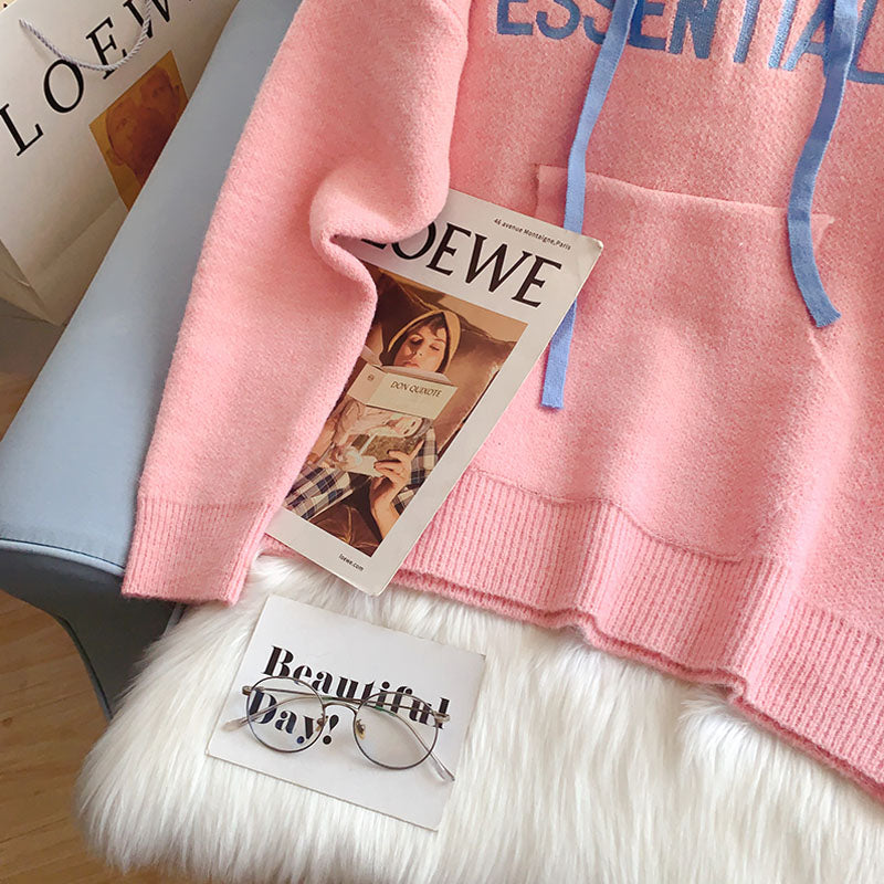 Lazy Letter bestickter Kapuzenpullover Pullover Damen Pullover 5216