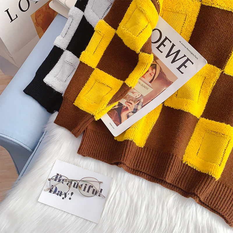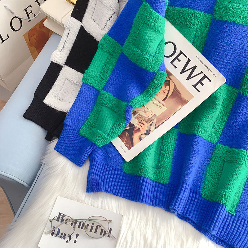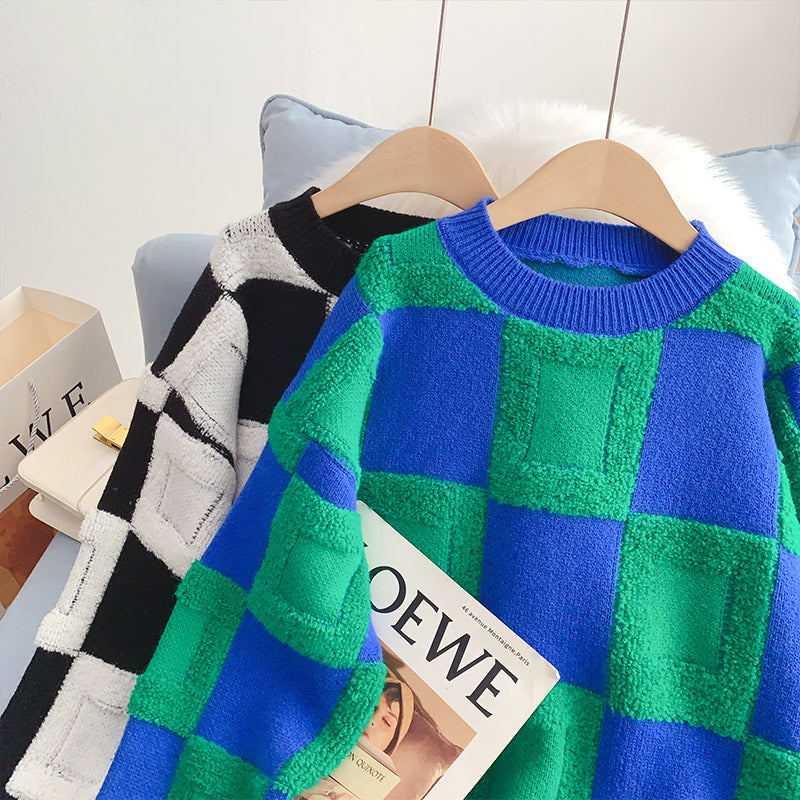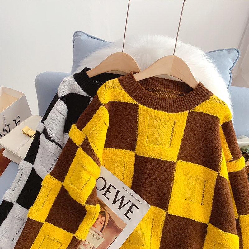Karierter Pullover mit Kontrastmuster Lazy Wind 5063