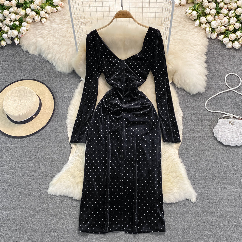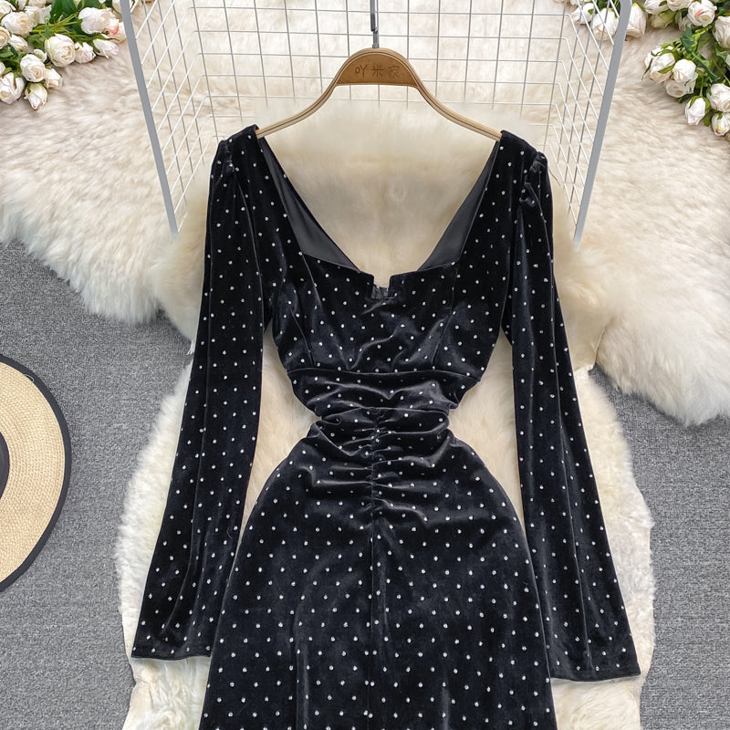 Langarm Slim Fit Hot Drill hochwertiges enges Hüftwickelkleid 3723