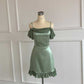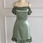 Matcha Grün Retro Süßes Einfaches Kurzes Satin Homecoming Kleid Partykleid gh4894