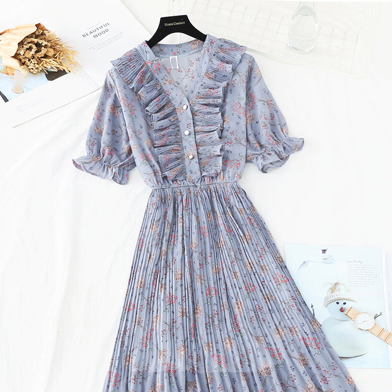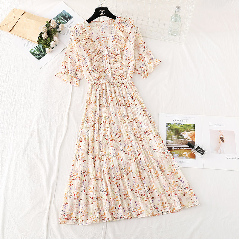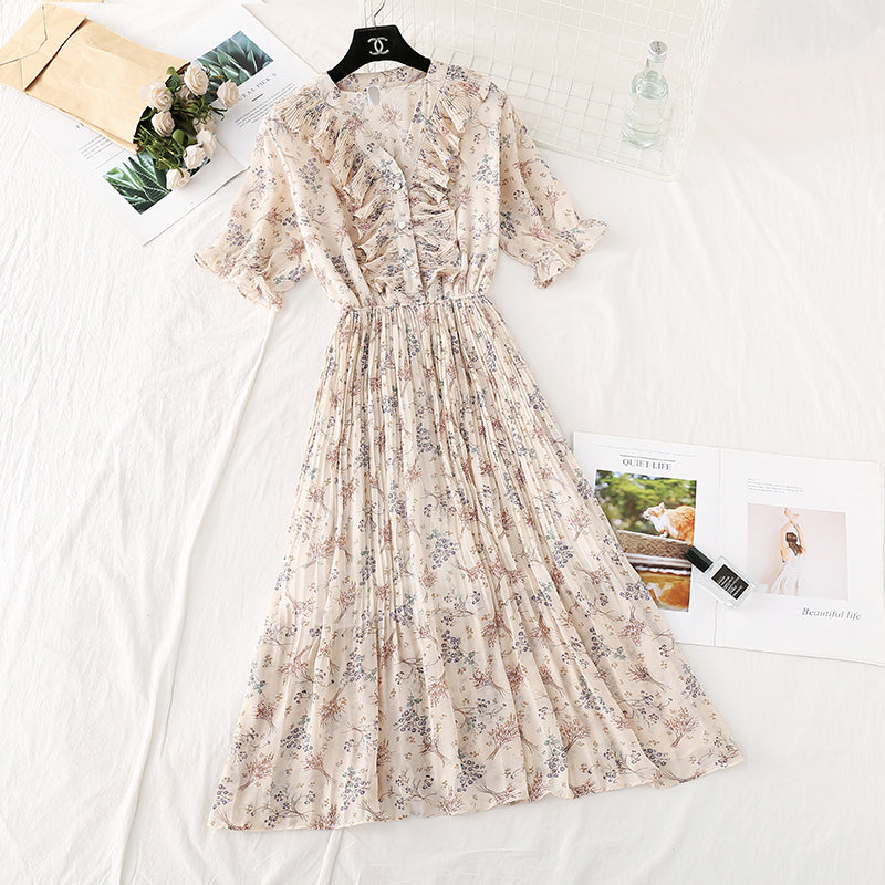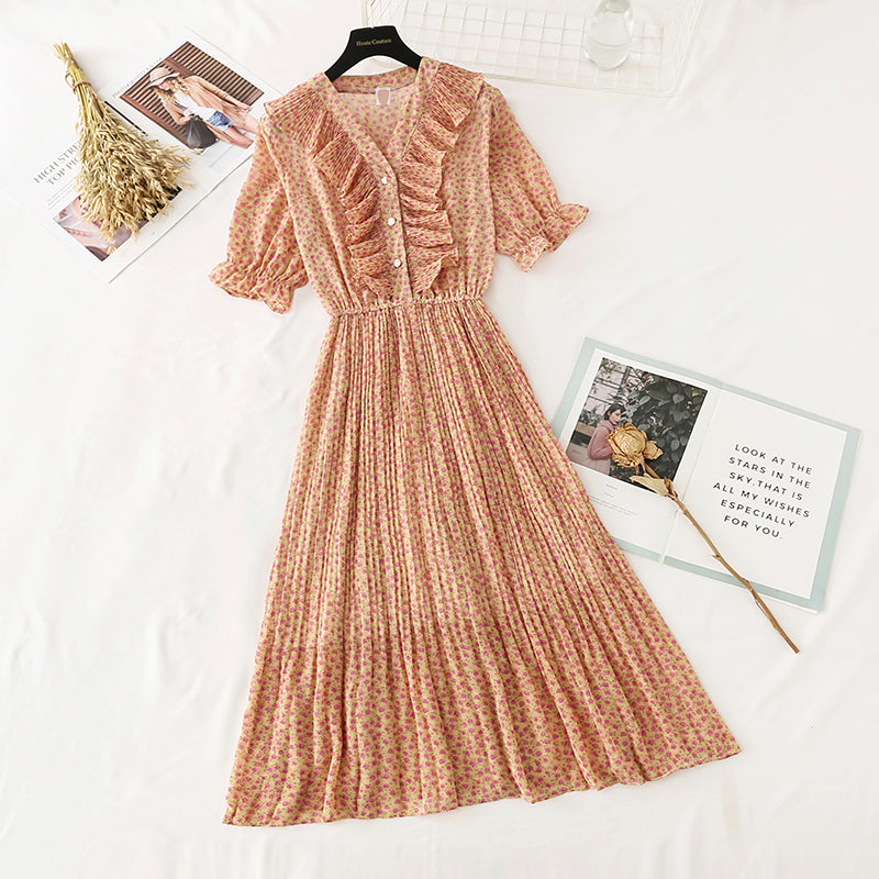 Neuer französischer Retro-Chiffonrock mit sanftem Wind und hoher Taille, dünner, bauchbedeckter Rock 4605
