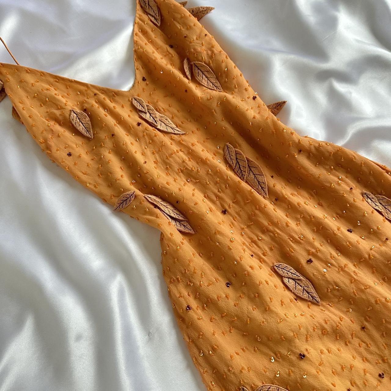 Orange wunderschöne Retro-Mode elegante exquisite Blatt Sicke Spaghetti Strap lange Chiffon Ballkleid Abendkleid Geburtstag Party Kleid Ballkleid gh3642