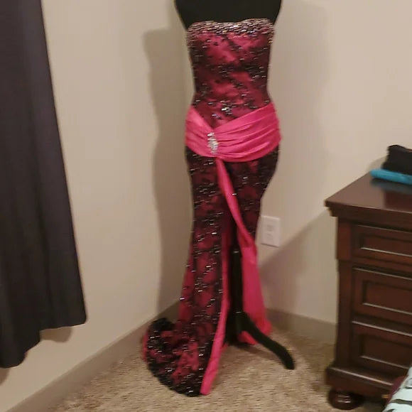 Wunderschönes, elegantes, exquisites, perlenbesetztes, bodenlanges Ballkleid aus Satin im Retro-Stil in Rosa, Abendkleid gh3447
