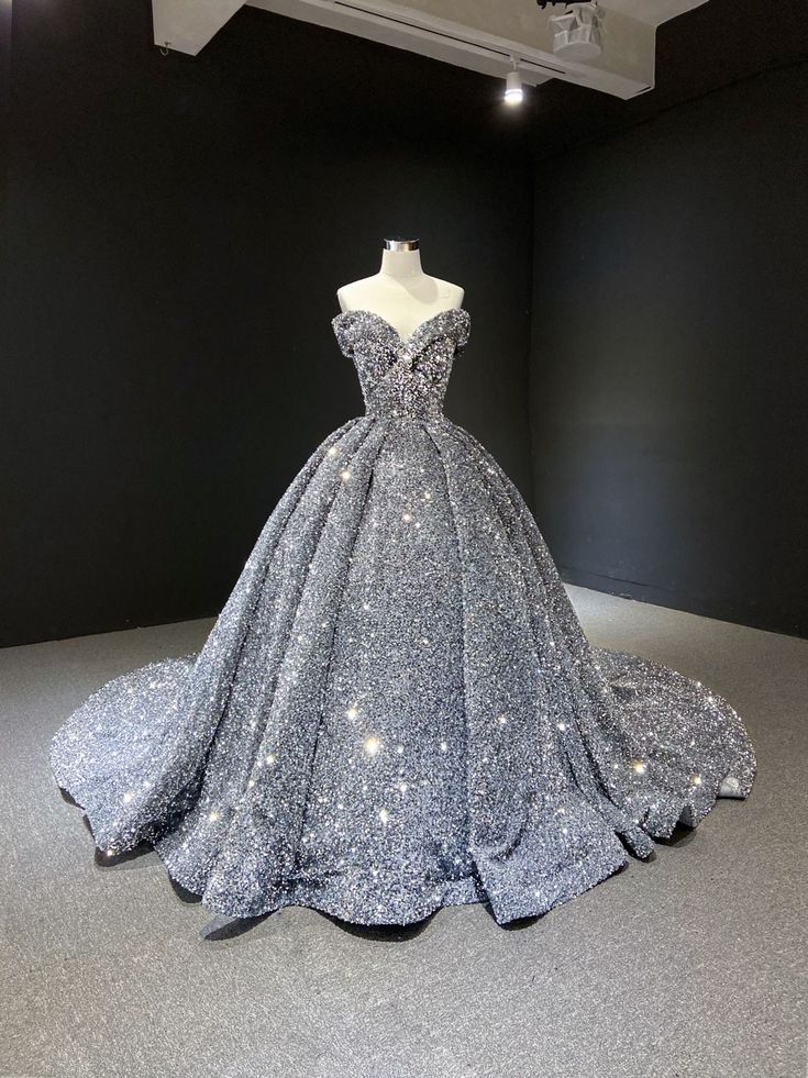 Silber/Rot/Grün Glänzend Wunderschöne Pailletten Langes Ballkleid Abendkleid Off Schulter Erwachsene Zeremonie Kleid gh3128