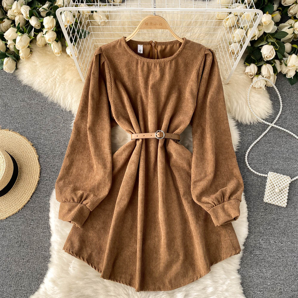Einfaches langärmliges Cordkleid Modekleid 10887