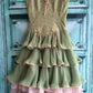 Grün rosa süße Spaghettiträger mehrlagiges langes Spitzentüll Ballkleid Abendkleid Coming-of-Age-Zeremoniekleid gh2931