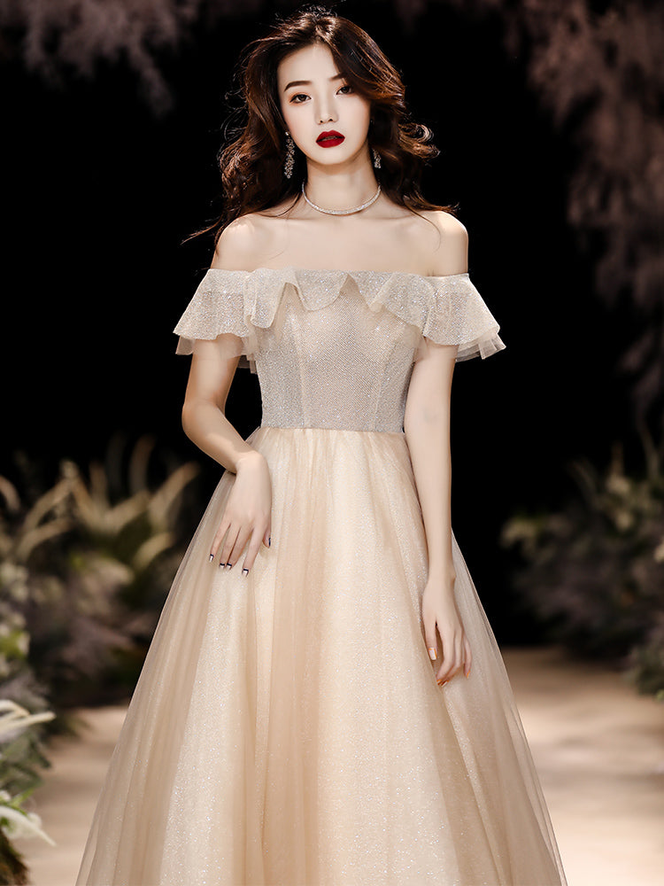 Glitzerndes Champagner-Tüll-Pailletten-Abschlussballkleid 8276