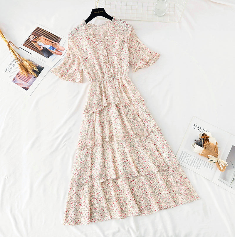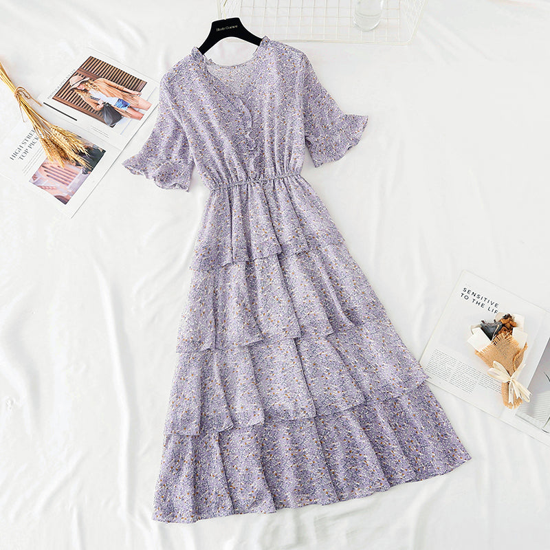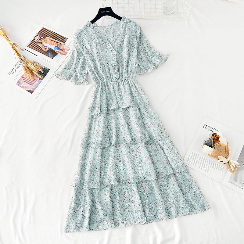 Die neue Taille ist schmal, französischer Retro-Chiffon-Kuchen-Langrock 4602
