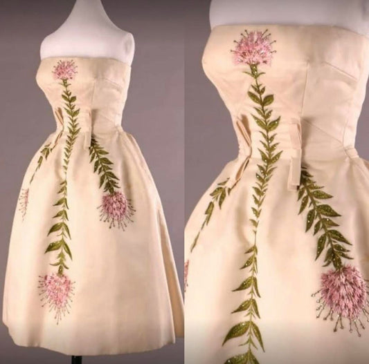 girlhomeshops – Elfenbeinfarbenes, zartrosa, geblümtes, langes Satin-Ballkleid, Ballkleid, gh5553