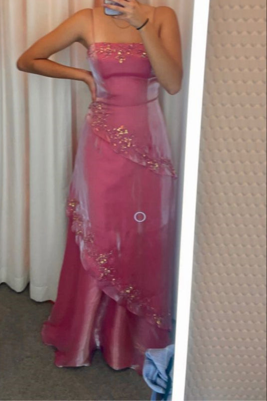 girlhomeshops – Rosa, exquisites, geblümtes, langes Tüll-Ballkleid, Abschlusskleid, gh5645