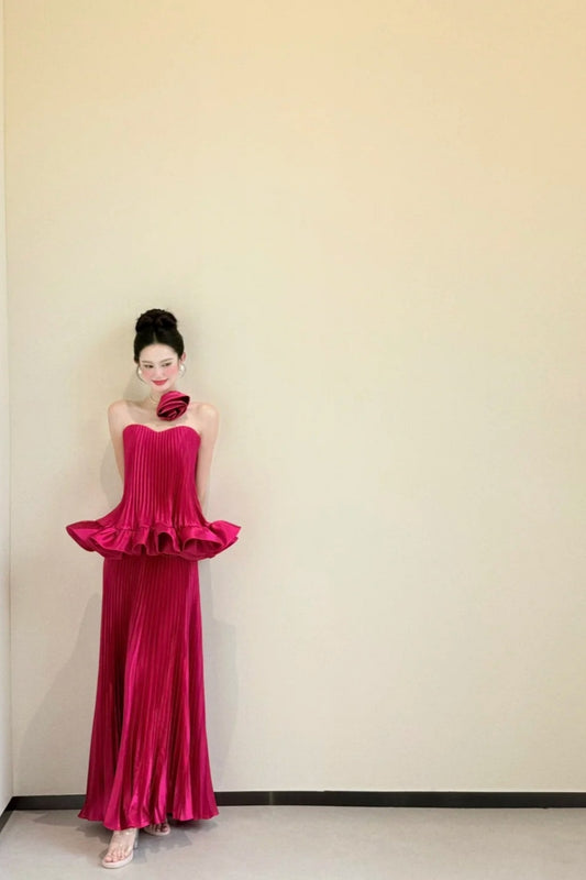 girlhomeshops-Lila Mode Plissee Langes Ballkleid Abendkleid gh5971