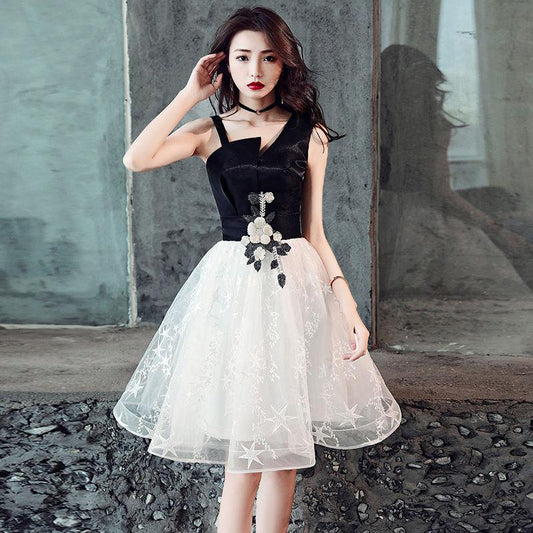 Schwarzes und weißes kurzes Abschlussballkleid Heimkehrkleid 8360