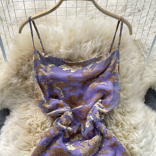 Sanfter Wind, geblümtes Strapskleid über dem Knieschlitzrock 7097