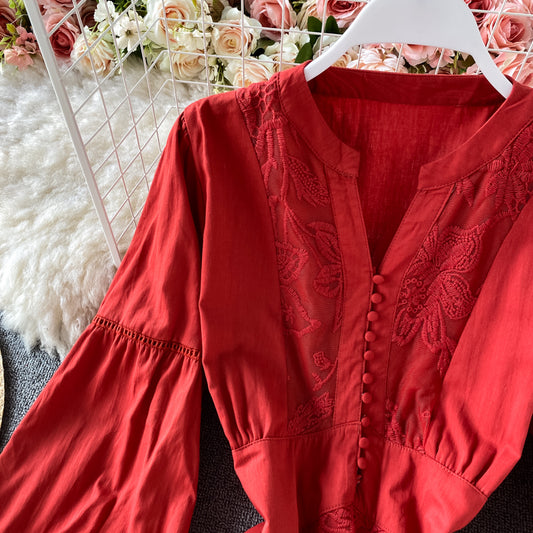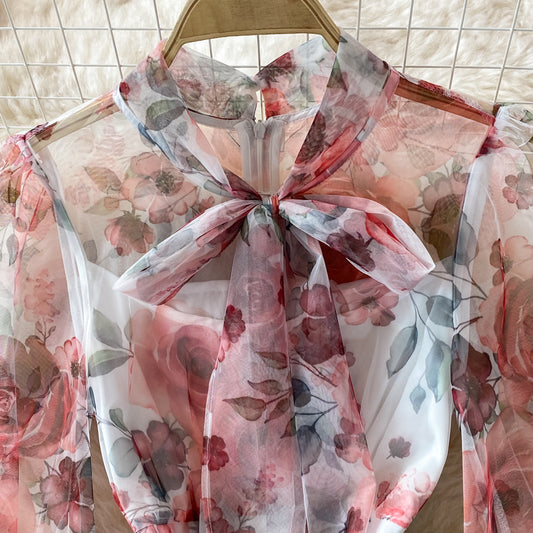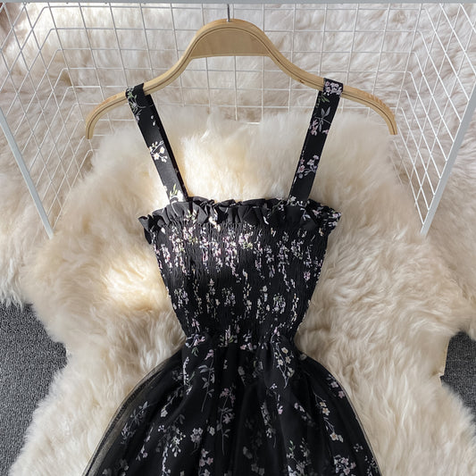 Blumenkleid mit sanftem Wind, süßer Feenrock, Blasenärmel, Rock in A-Linie 4894