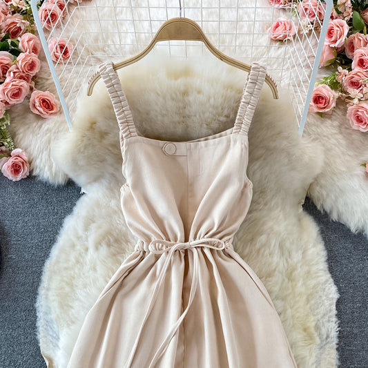 Baumwoll-Leinenrock mit sanftem Wind, schmale Taille, französisches Minderheitenkleid 4186