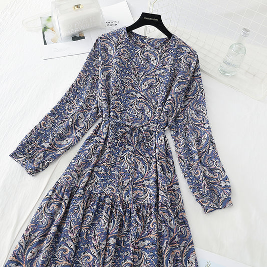 Sanftes Windfliege-Krawatten-dünnes Blumen-Chiffon-Kleid mit hoher Taille 3221