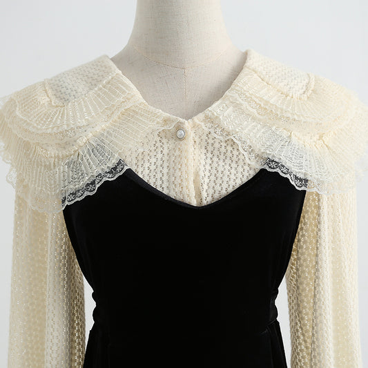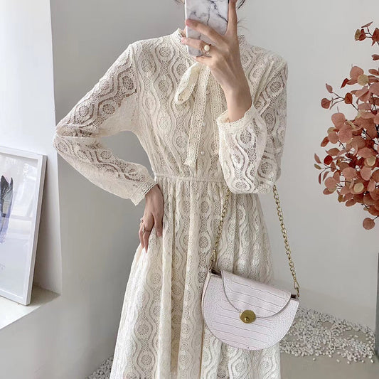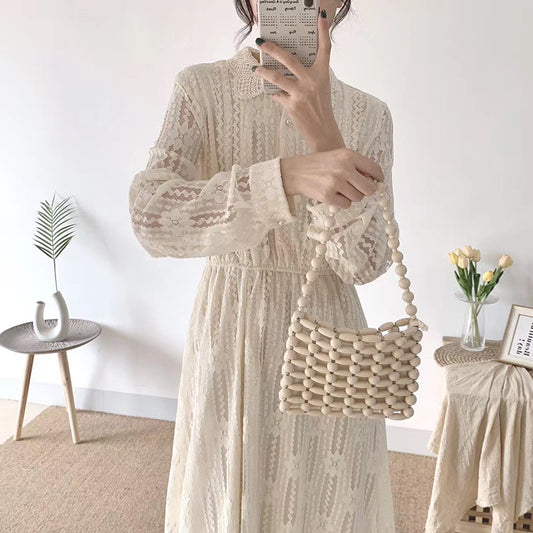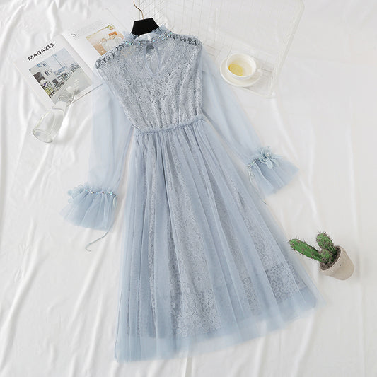 Dreidimensionales Blumenspitzenkleid aus schwerer Industrie im französischen Stil 4325