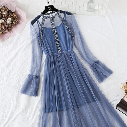 Schwere Industrie-Strass-Spitzen-Gaze-Kleid 4356
