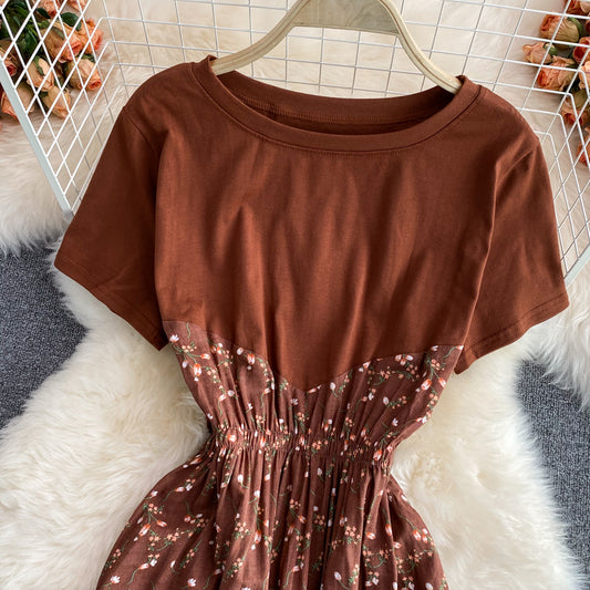 Hepburn Rundhals-Patchwork-Blumenkleid 3218