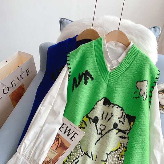 Schwere Industrie-Nagelperle mit V-Ausschnitt, gestrickte Weste, Weste, Mantel 5255