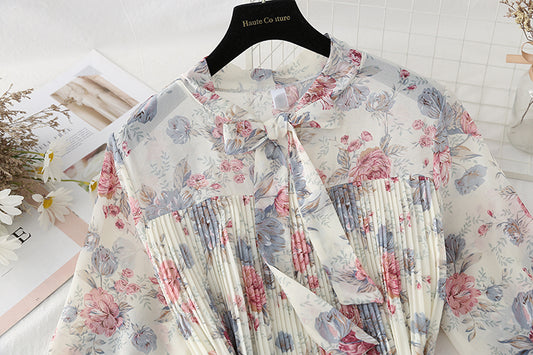 Neues, plissiertes Blumenkleid mit elastischer Taille für Damen 4816