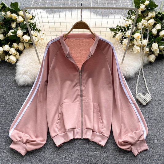 Lässiger Sportmantel Damen Herbst Reißverschluss Strickjacke 1540