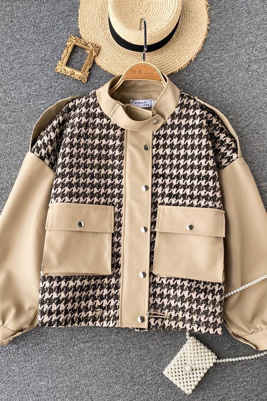 Freizeitmantel Damen Leder genähtes Tausendvogelgitter 1533