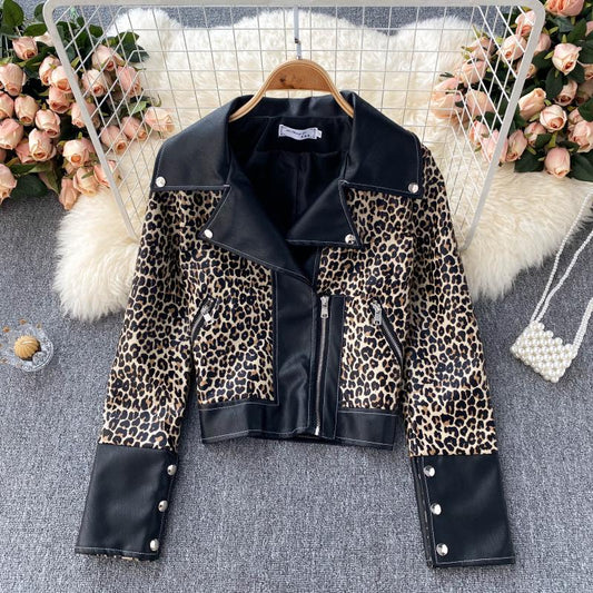 Damen Schalkragen Langarm Single Auto Ledermantel 1510
