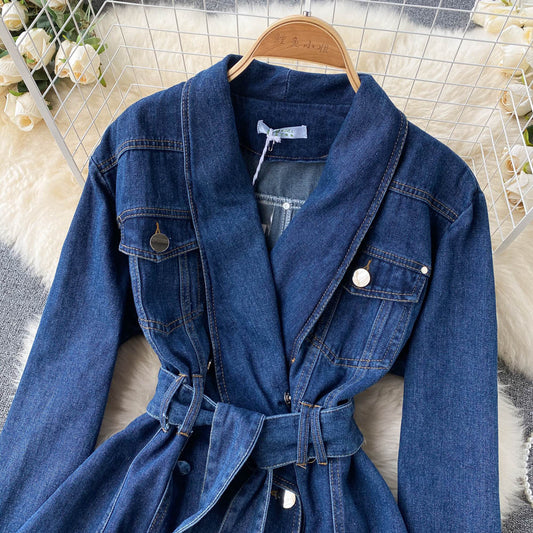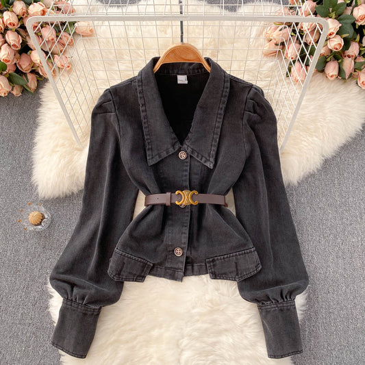 Jeansjacke Damen V-Ausschnitt mit offenem Rücken Temperament Top 1503