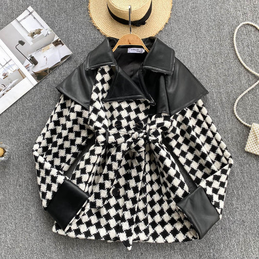 Kontrastmantel mit Diamantnähten, Damenschnürung an der Taille, hohe Taille und dünn 1487