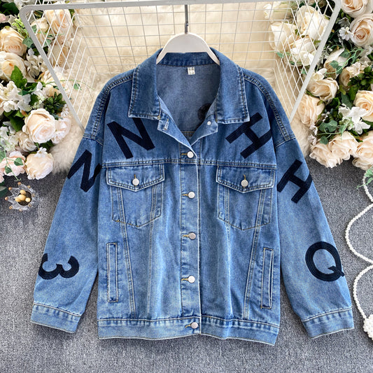 Jeansjacke Damen Herbst neue Stickerei Buchstabe lose 1493