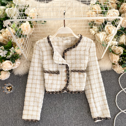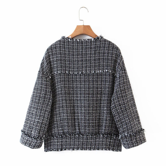Jacke damen herbst vielseitig schlank retro tweed 1491