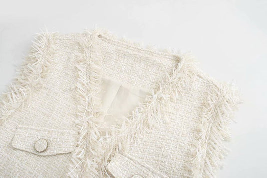 herbstlicher Wollpullover für Damen mit kurzer, fransiger Strickjacke 1386