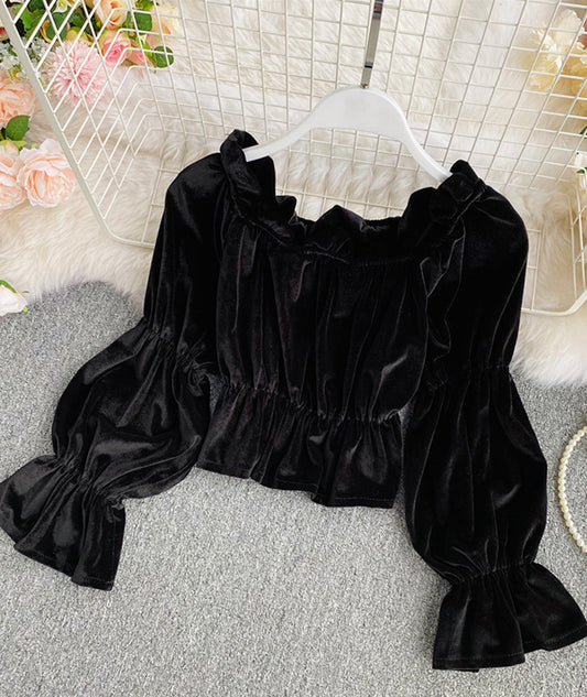 Romantisches einteiliges Oberteil mit langen Ärmeln und Samtoberteilen 387
