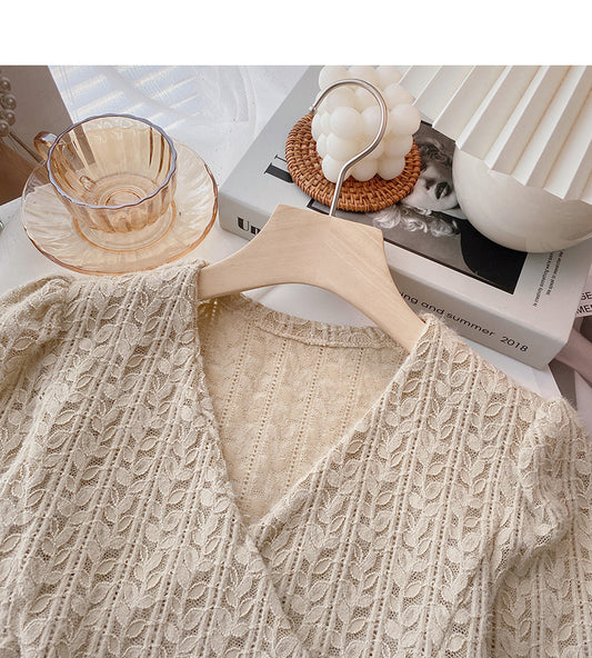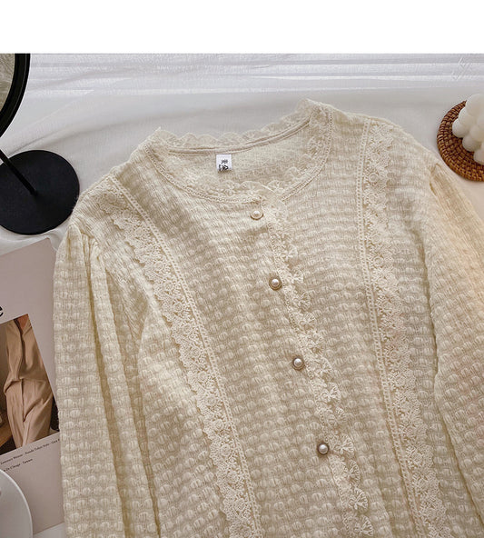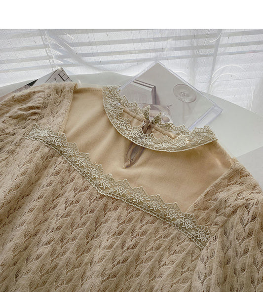 Koreanische Version des einfarbigen Spitzen-Tops mit Rundhalsausschnitt im ausländischen Stil 6335